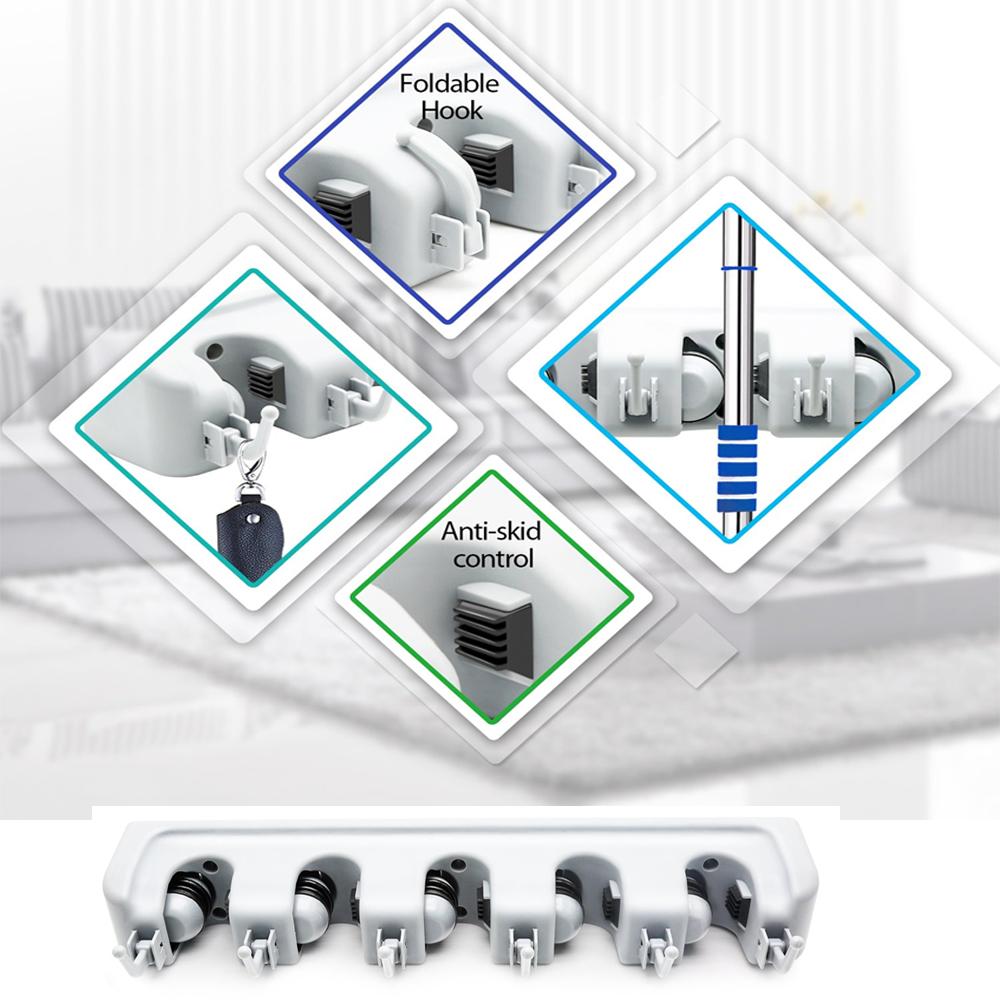 - Heavy Duty: Broom & Mop holder grip everything tightly and securely. Each rolling ball holds up to 6.5 pounds of weight(smooth rod is up to 3 pounds), the holder can hold up to about 11 tools in total. Made of high quality ABS and slots and screws. Products can grip everything tightly and securely.