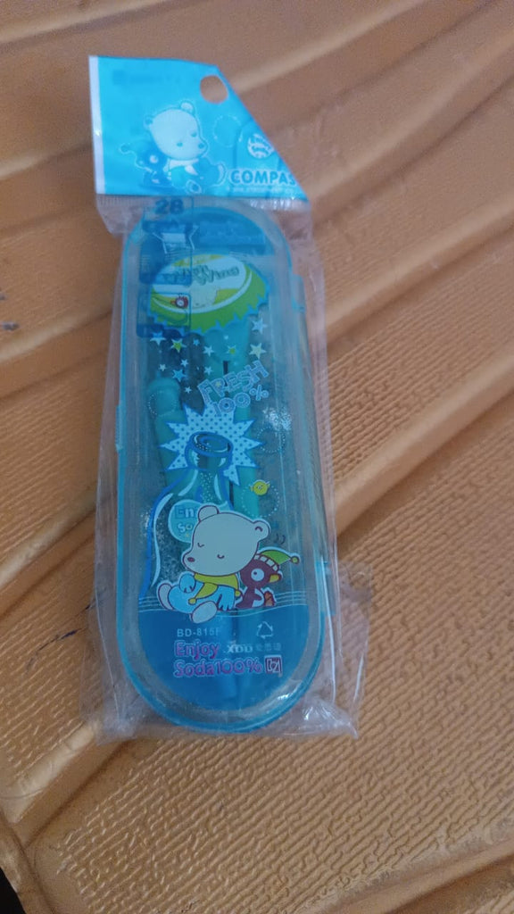 The set comprises a durable metal compass, a mechanical pencil, a tube of lead refills, and a cute case that keeps everything organized and easy to carry. With its colorful and kid-friendly design, this is a perfect gift for school-going children and a must-have addition to any student’s stationery collection.