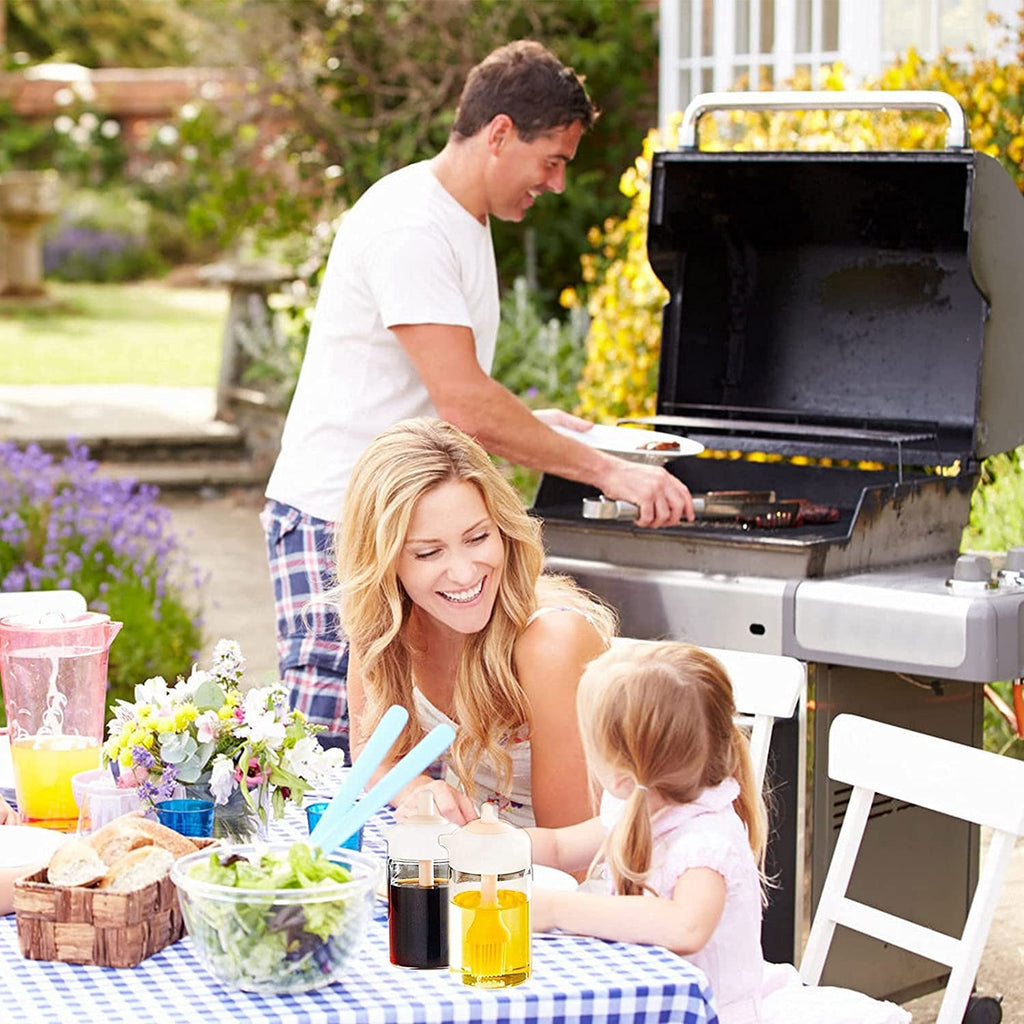 - [2 in1 Design】: Oil dispenser bottle with brush adopts an integrated design of pressing and dipping which is a plus and unique, oil dispenser bottle & silicone brush set, you can pour oil or brush oil which is convenient for cooking and improving diet. Fill this oil pot with your favorite oil, vinegar and soy sauce as needed, besides, oil bottle with a silicone brush secured on the lid, use the brush to glaze and oil on your ingredients that are perfect kitchenware tools for home & kitchen.
